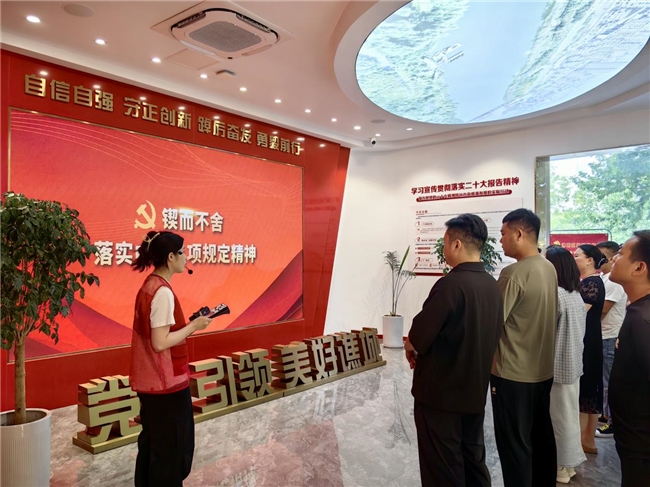 参观结束后,参会党员在党员活动室集中学习了《关于加强党的作风建设论述摘编》部分章节和在纪念中国人民抗日战争暨世界反法西斯战争胜利80周年大会上的重要讲话精神。紧接着,支部书记郭玉平以《自觉践行八项规定精神,筑牢民族复兴纪律根基》为题讲授了党课。然后,观看了党员教育片《学习时间丨党的作风关系人心向背,决定党和国家事业成败》。