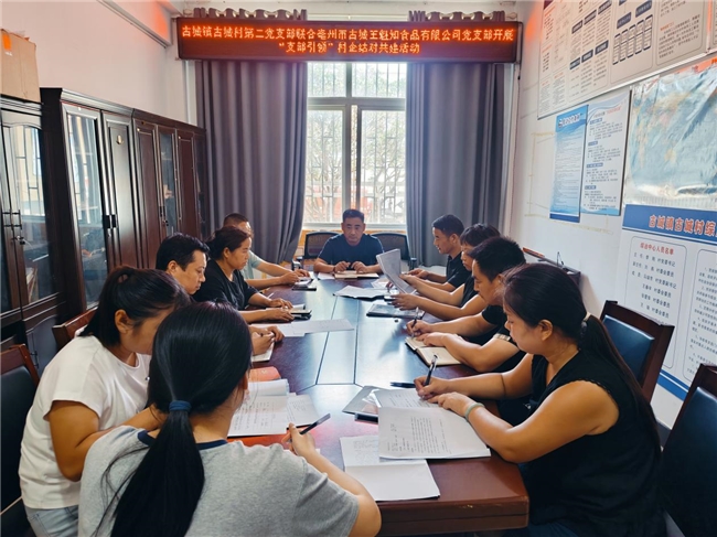 为强化党建引领作用,不断提升基层治理效能,进一步促进党组织间优势互补,推动党建与业务深度融合,近日,古城镇古城村第二党支部联合亳州市古城王魁知食品有限公司党支部开展了“支部引领”村企结对共建活动。