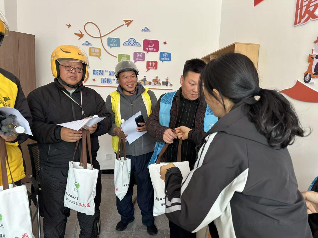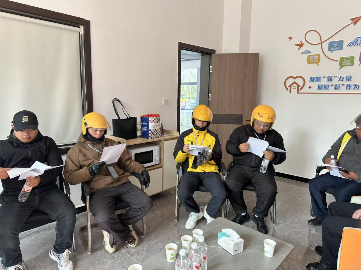 随后,工作人员带领外卖员共同学习了党的二十届四中全会会议公报的主要精神。通过集中领学与互动交流,引导新就业群体深入了解国家发展蓝图与政策导向,鼓励他们积极融入基层治理,在平凡的岗位上发光发热,争做美好生活的创造者和守护者。