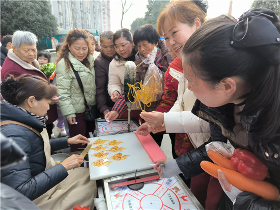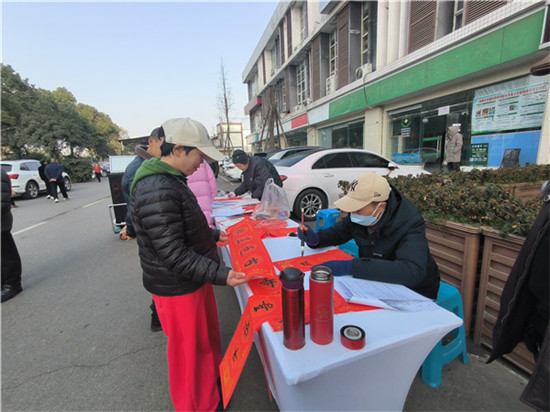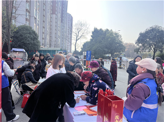 活动现场张灯结彩,红幅高挂,处处洋溢着浓浓的节日气息。结合居民新春需求,现场精心设置了写对联、写福字、剪窗花等传统民俗体验区,以及套圈圈(套蔬菜)、投壶等趣味互动区,还特别筹备了居民文艺展演环节,内容丰富、形式多样,兼顾不同年龄段居民的参与需求,让大家在欢乐互动中感受新春美好,体验邻里同乐的温馨。