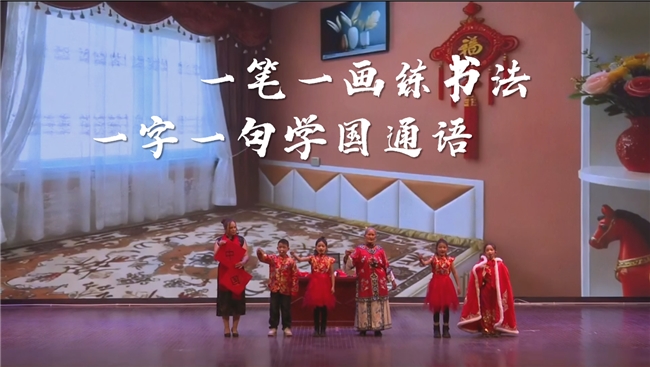 阿热勒乡选送的节目《一笔一画练书法 一字一句学国通语》
