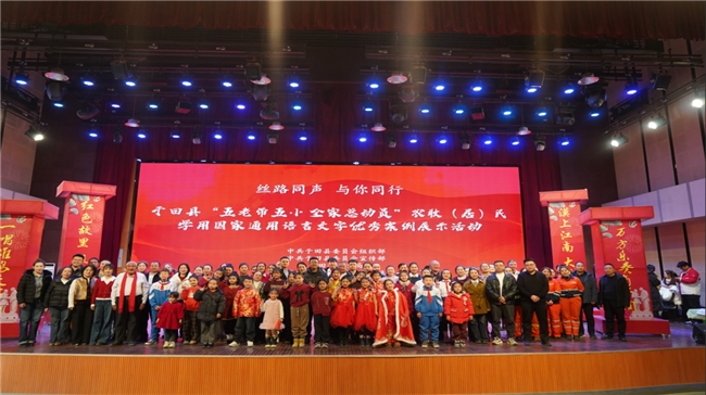 2月11日,于田县“五老带五小 全家总动员”农牧(居)民学用国家通用语言文字优秀案例展示活动在融媒体演播大厅举行。15个从基层一线选拔的案例登台展演,情景剧、小品、朗诵、书法展示、快板轮番登场,主角以家庭为单位,参演者有环卫工人、果农、退休教师和孩子等等。活动通过“和田组工”视频号直播,2.3万人次在线观看,点赞次数17.1万次,评论区里,各族群众用国通语互致新春祝福。