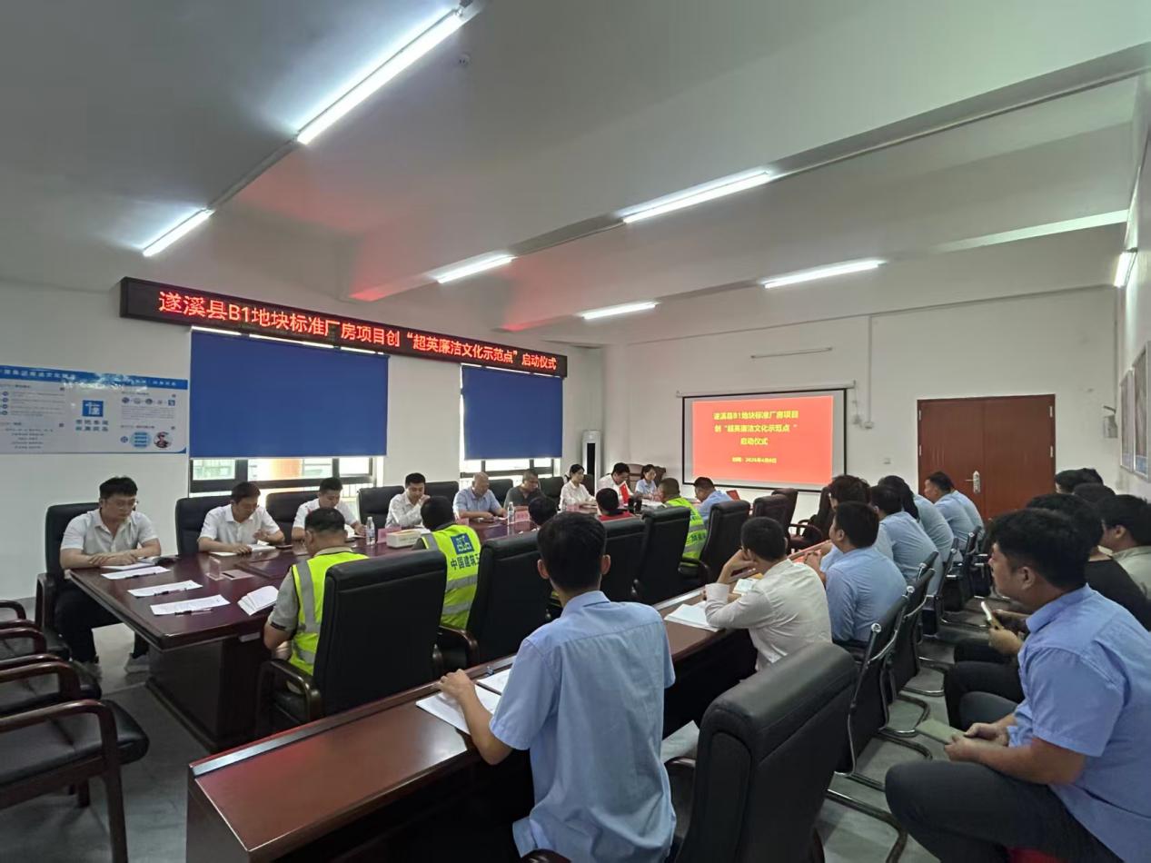 为扎实推进廉洁文化建设,2026年4月8日,中建五局华南公司遂溪县B1地块标准厂房项目举行“超英廉洁文化示范点”启动仪式。项目管理人员及共建单位代表共同参加活动。